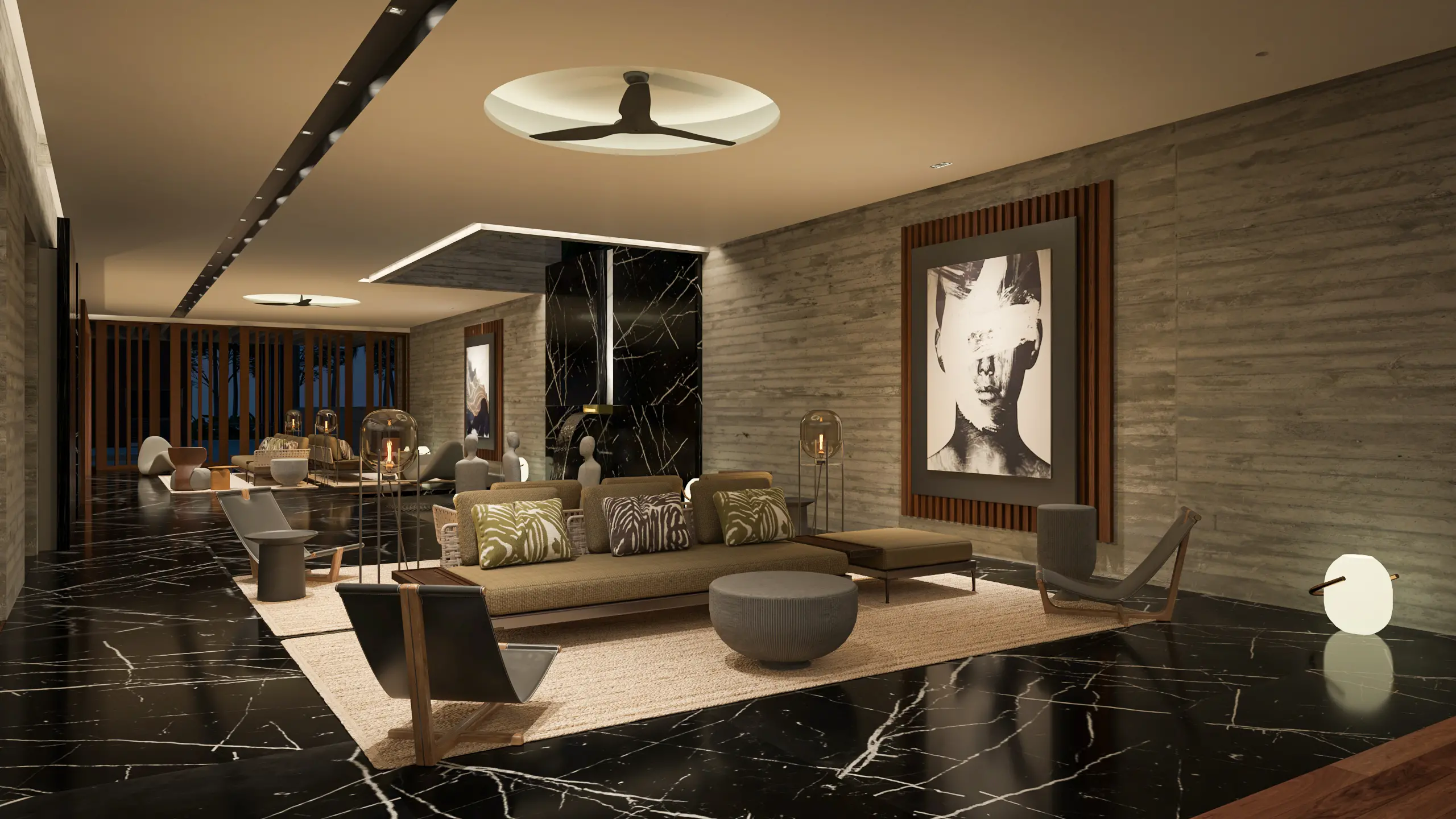 Residencia contemporánea que combina materiales naturales, tonos neutros y luz cálida para crear un ambiente sereno y sofisticado. Los espacios abiertos y la integración de madera y piedra transmiten frescura y confort, logrando un equilibrio entre modernidad y naturaleza.