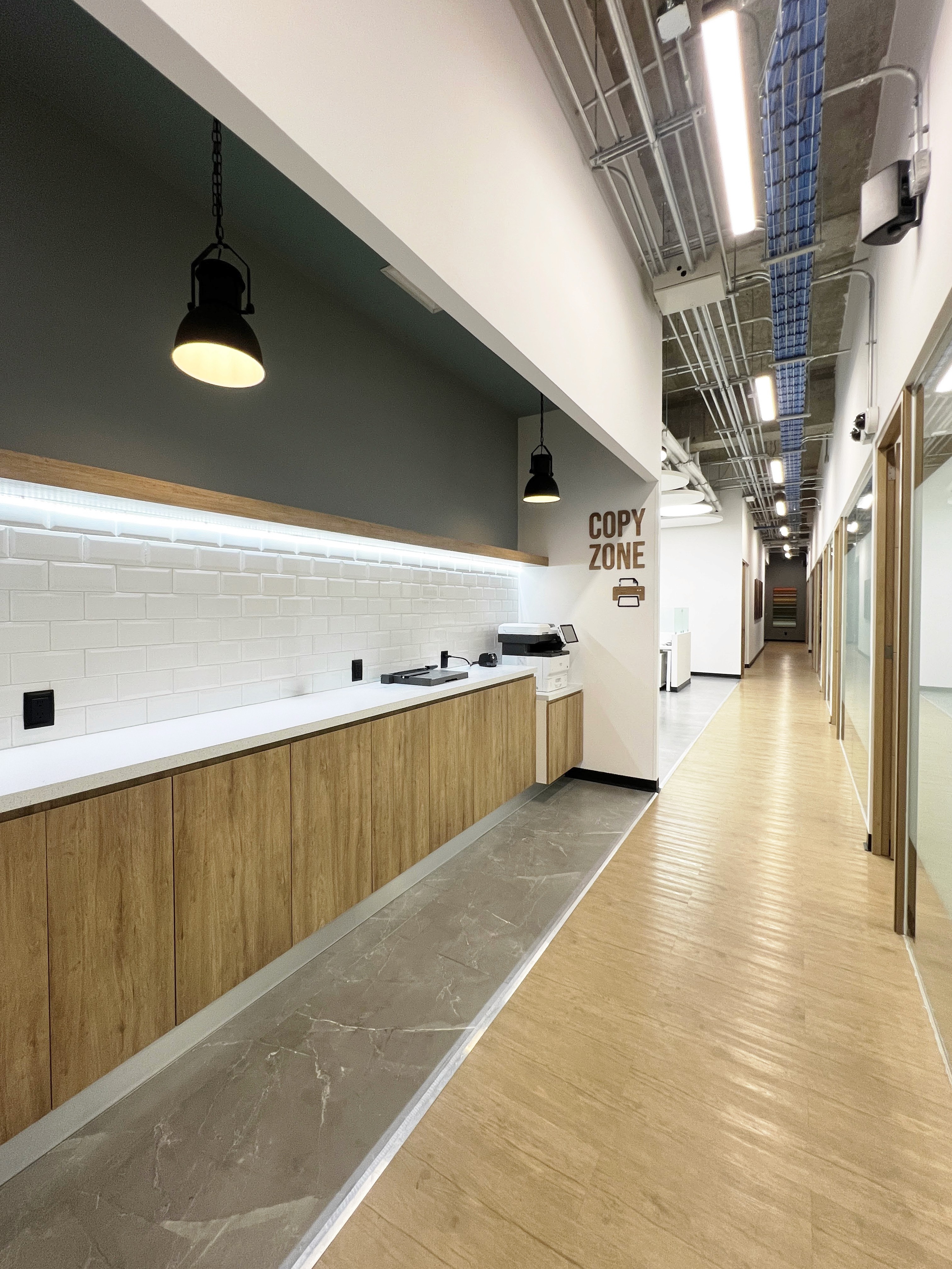 Remodelación con una sofisticada mezcla deelementos naturales como madera, piedras y acentos de color, fomentando en los espacios la colaboración y la flexibilidad para el trabajo interactivo, generando comodidad y eficiencia durante todo el día.