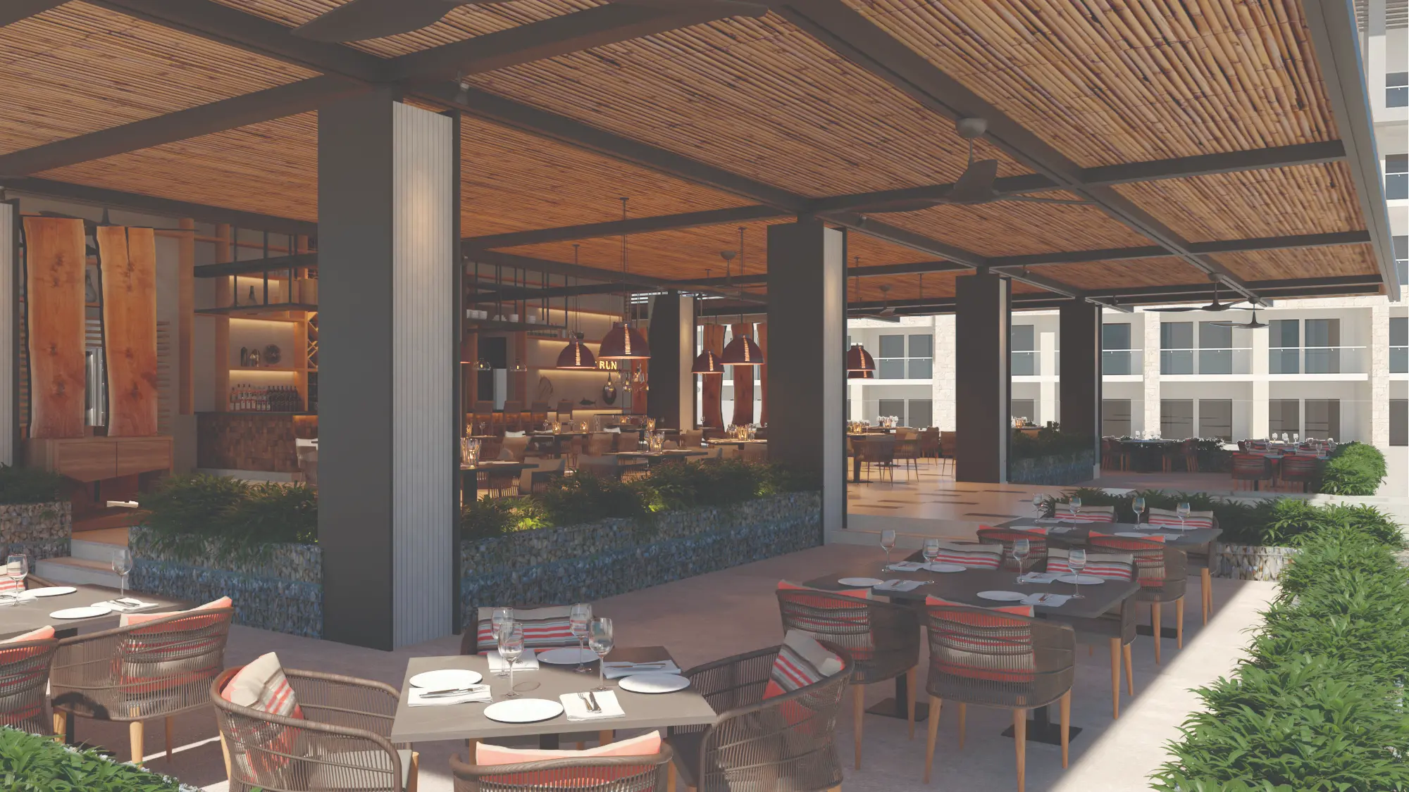 Cada restaurante ha sido planeado para maximizar confort, funcionalidad y una experiencia memorable, integrando la estética del lugar con el paisaje tropical de Cap Cana.