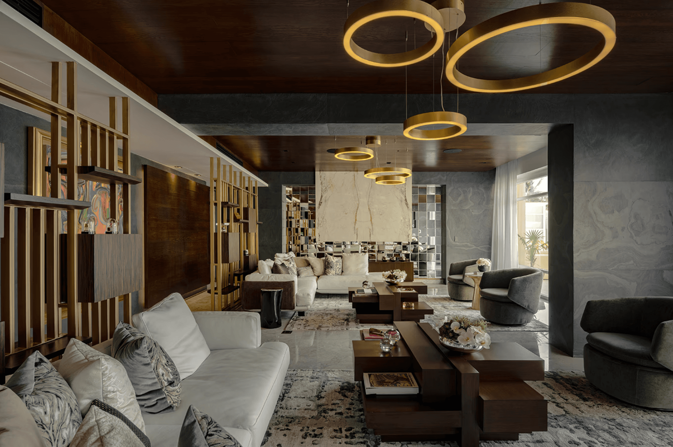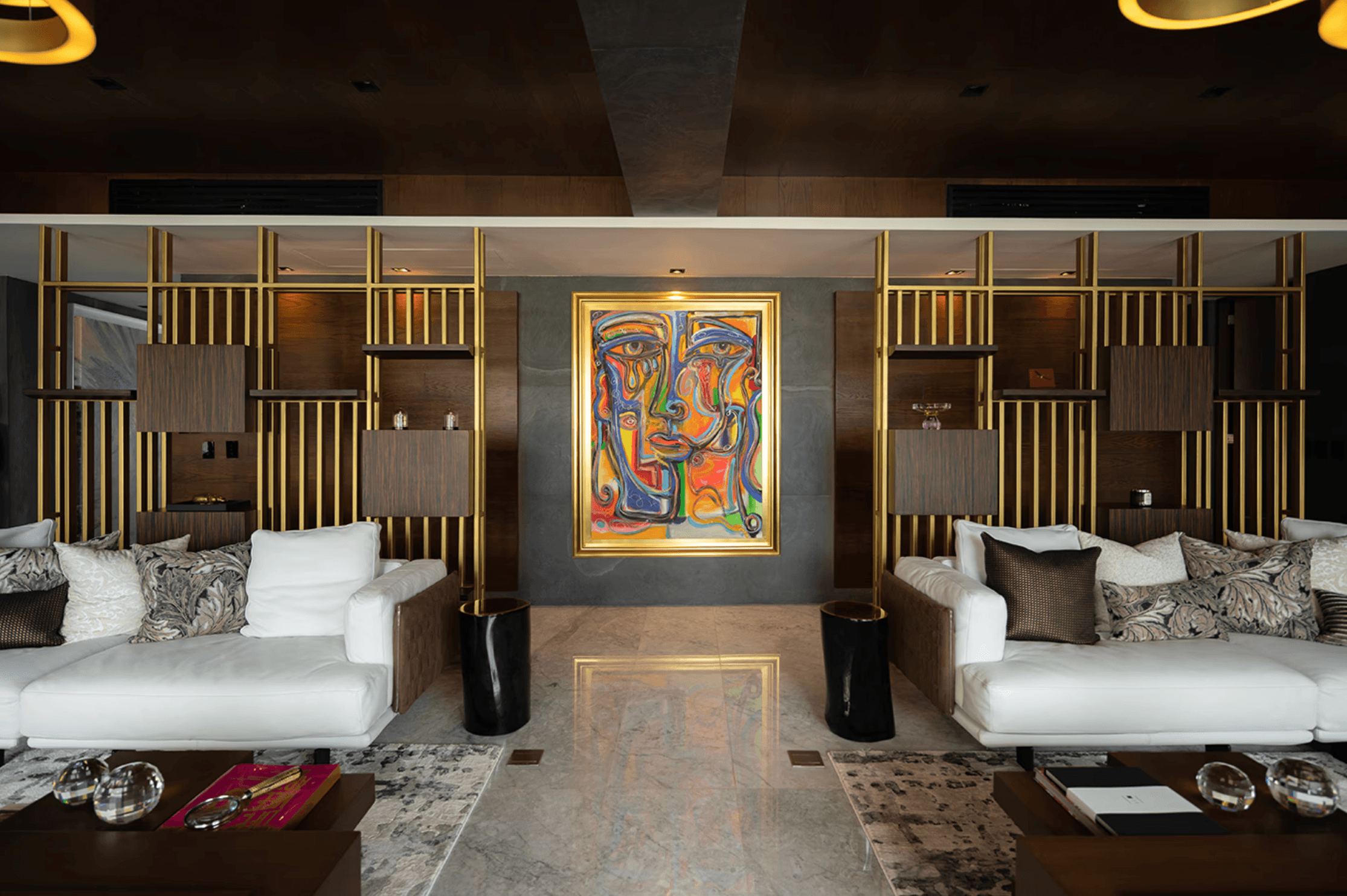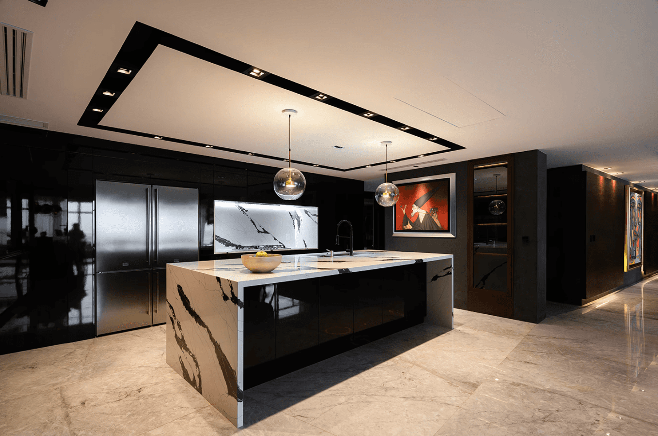 Mármol, madera, metales y arte, combinados para dar personalidad a este diseño único en un inmueble de lujo.