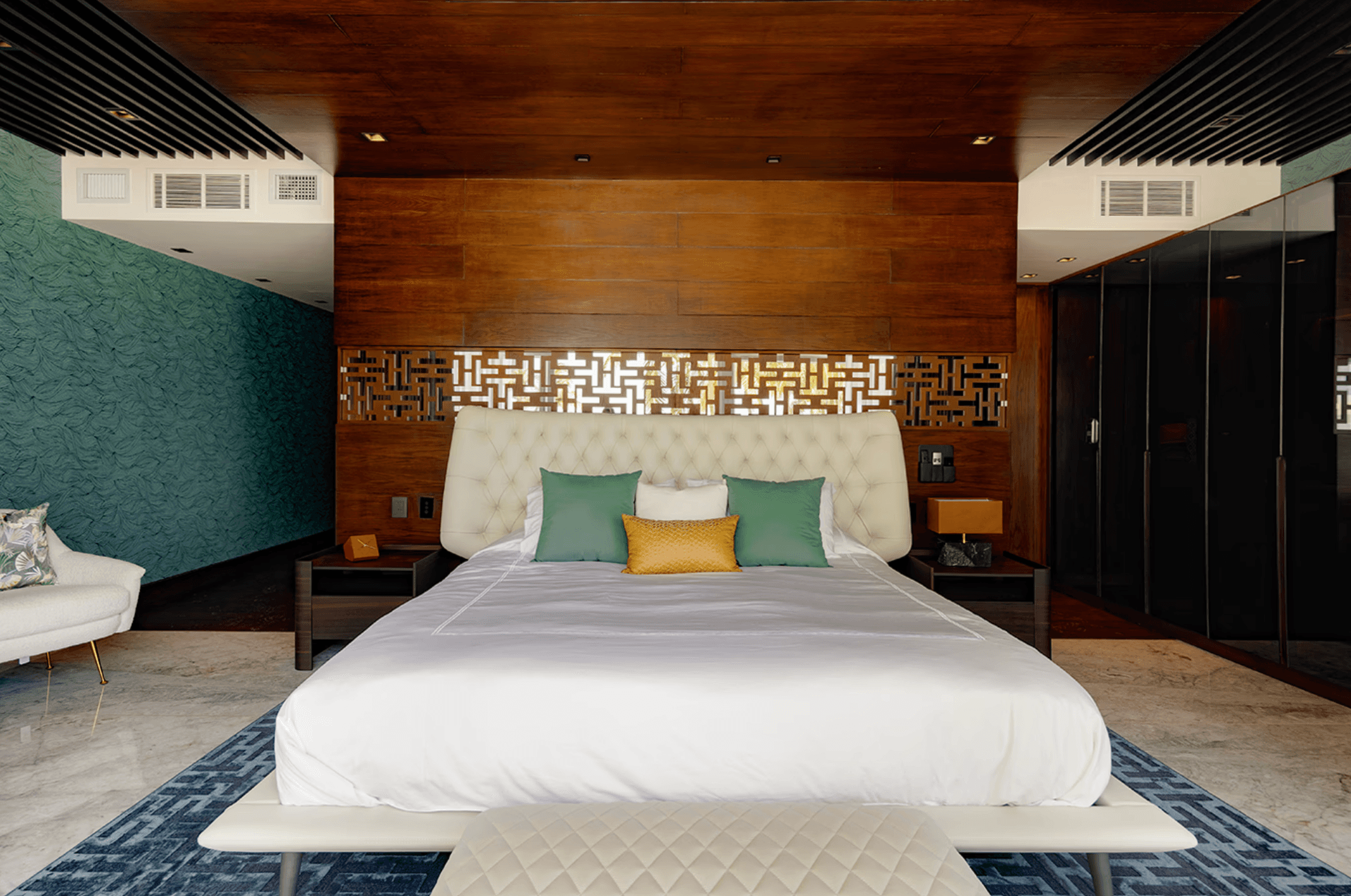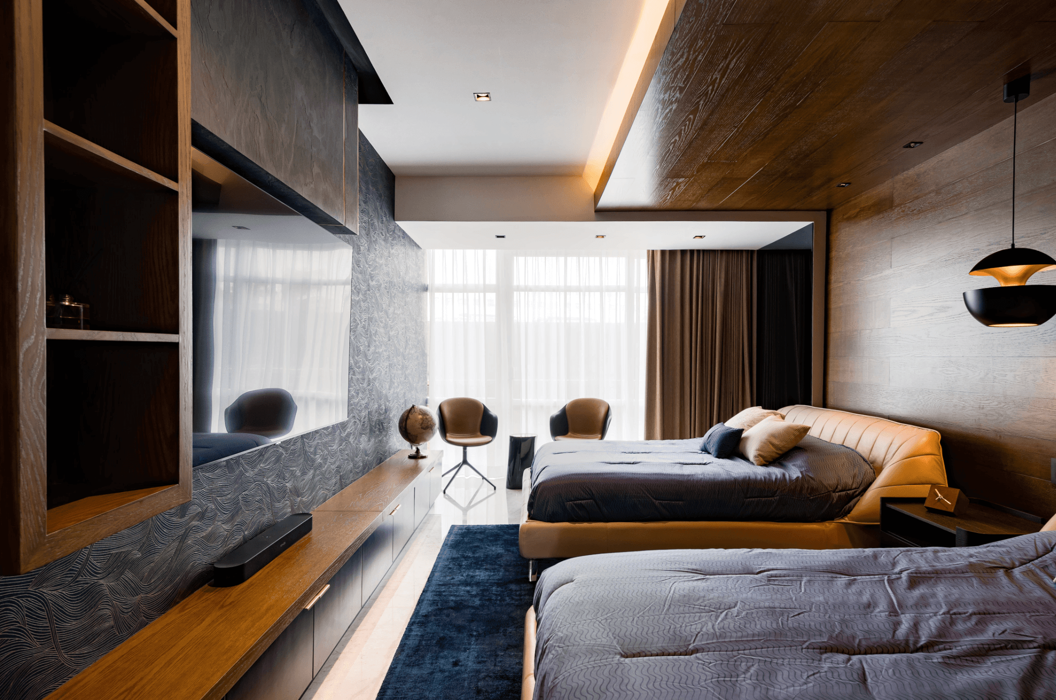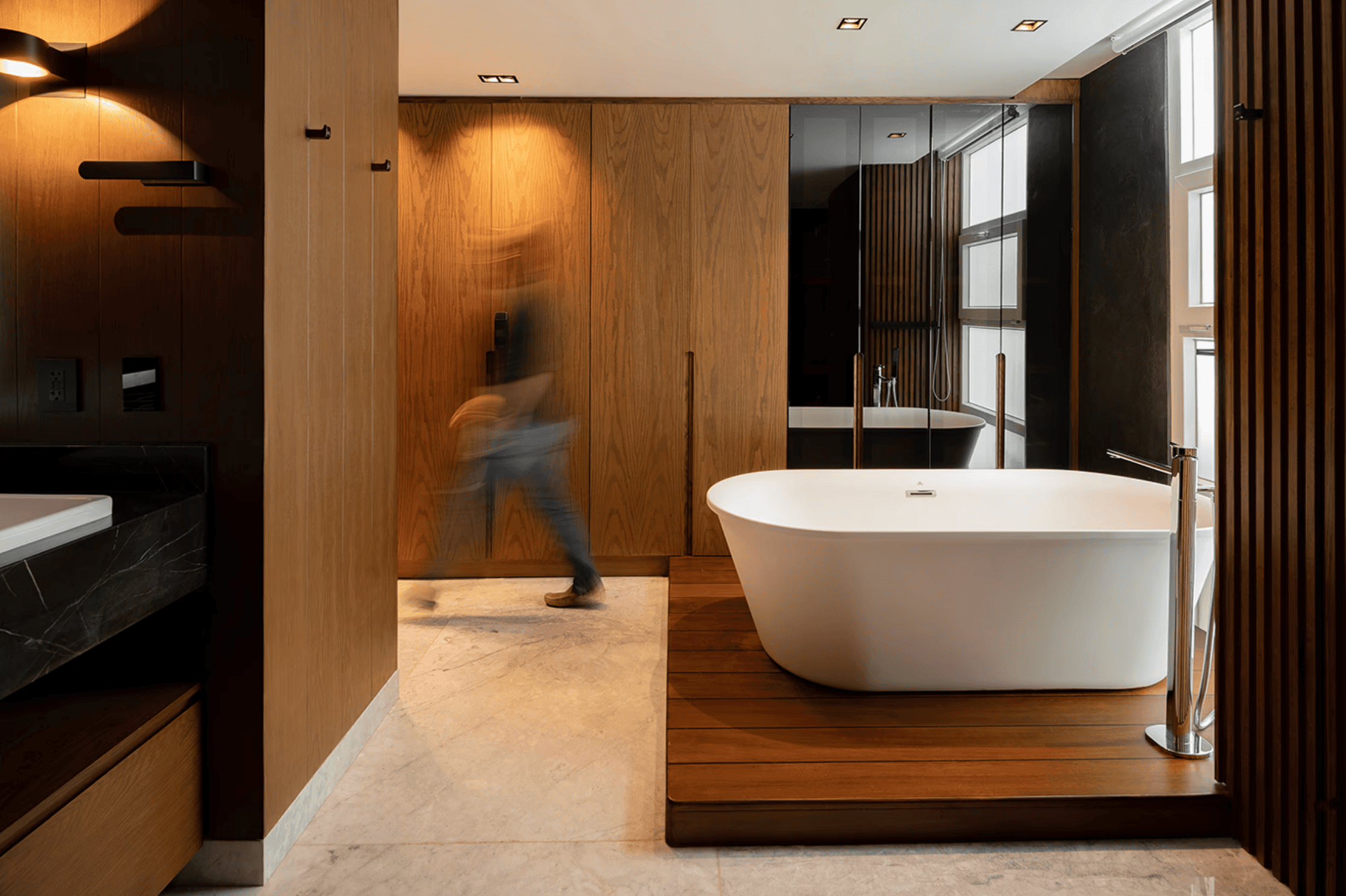 Mármol, madera, metales y arte, combinados para dar personalidad a este diseño único en un inmueble de lujo.